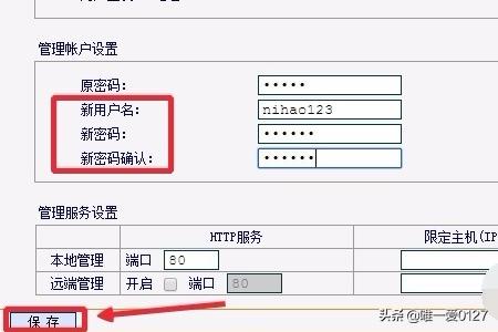 5、输入新的用户名和密码以后,点击保存按钮。这样以后就可以用你设置的新用户名和密码登陆管理路由器的各种设置。
