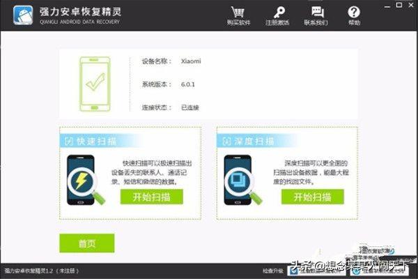 一、安装强力安卓恢复精灵,运行软件后,将手机连接到电脑上。