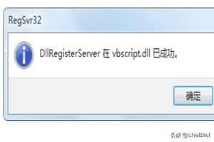 5、输入命令后回车,会弹出vbscript.dll中的DIIRegisterServer成功,点击确定关闭,经过以上两次成功提示,说明我们已成功修复IE组件。