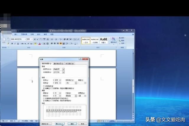 4、此时将光标放置空白页,单击右键选择“段落”,在弹出的对话框中选择“缩进和间距”——“行距”。