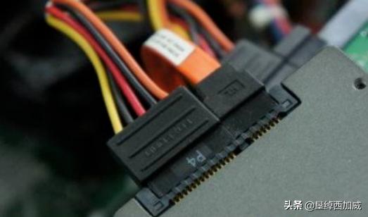 2、SSD硬盘的数据输入输出接口,SATA线,宽度比硬盘电源线要宽一点,形状同样是扁口。
