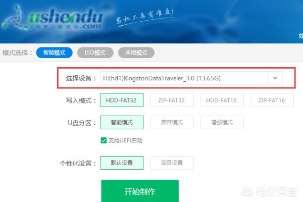 5、启动U盘PE制作工具,设备选择刚格式化好的U盘,写入模式、U盘分区、个性化都不需要设置,默认就好。