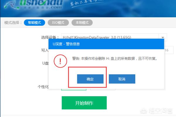 7、点击开始制作后,会提示你确认信息,点击【确定】。