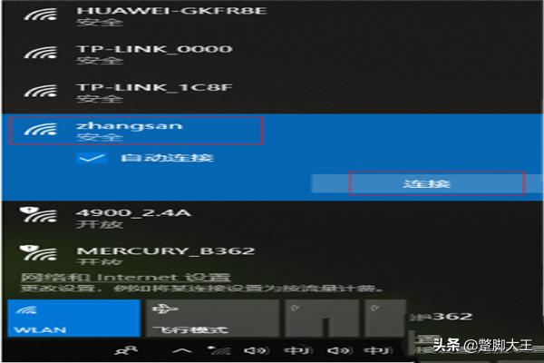 6、链接无线网,以WIN10为例,点击电脑右下角的无线网络图标,找到自己的WIFI点击链接