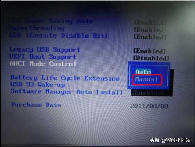 2、在【AHCI】选项上敲击【回车】选择【manual】。