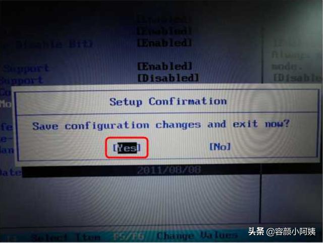 5、再点击右边的"SAVE"按钮,保存我们的配置;或者按F10保存退出。就退出BIOS操作界面了。