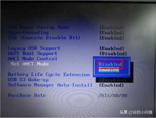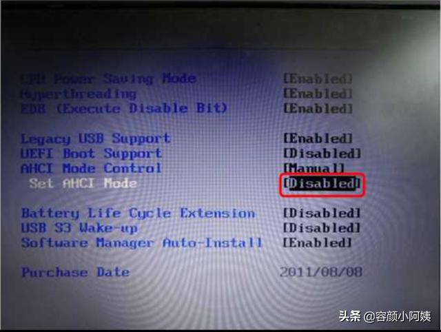 3、在出现的【Set AHCI mode】选项上敲击【回车】,选择【disabled】。