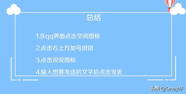 QQ上发说说的方法1、在QQ界面点击“空间”图标。2、点击右上角的“+”按钮,点击“说说”图标。3、输入想要发送的文字,点击“发表”即可。4、总结如下。扩展资料:有趣的QQ说说推荐:1、喜欢你、是否没道理、、2、花有百样红,人与狗不同3、走...