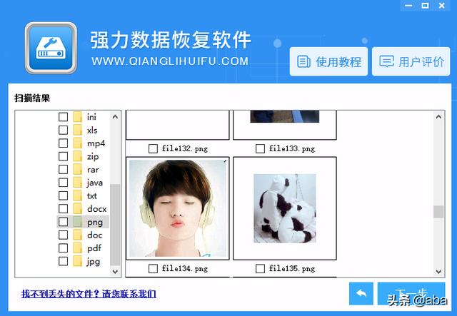 4、在扫描结果里找到我们需要恢复的照片,然后点击下一步