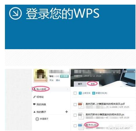 7.保存成功,在电脑的wps轻办公上登录,如果前面使用的QQ登录,电脑上也使用QQ登录,登录后,在电脑的”私人空间“的”文档“中就可以查看你刚刚加入的云文档了。